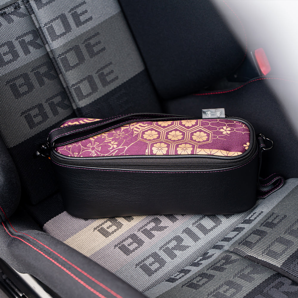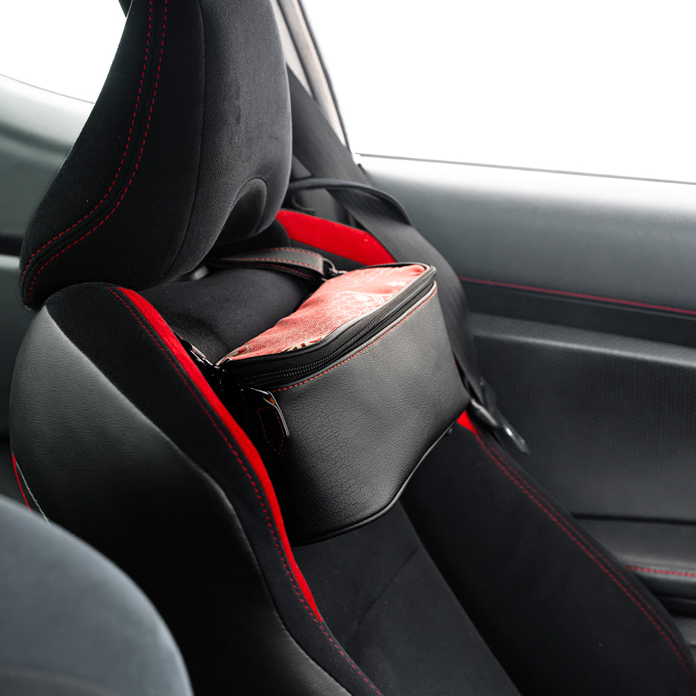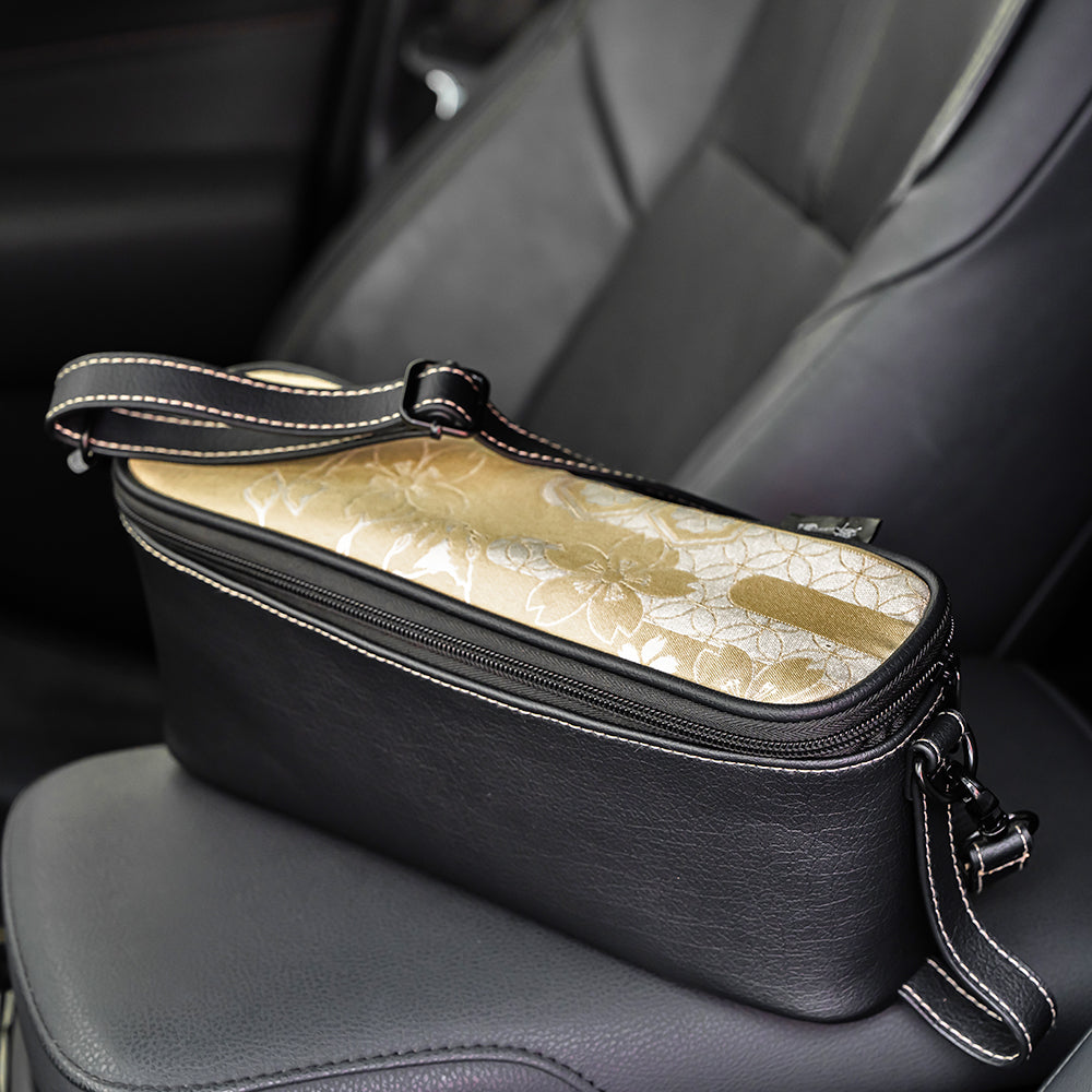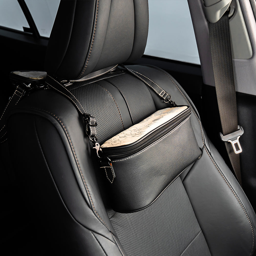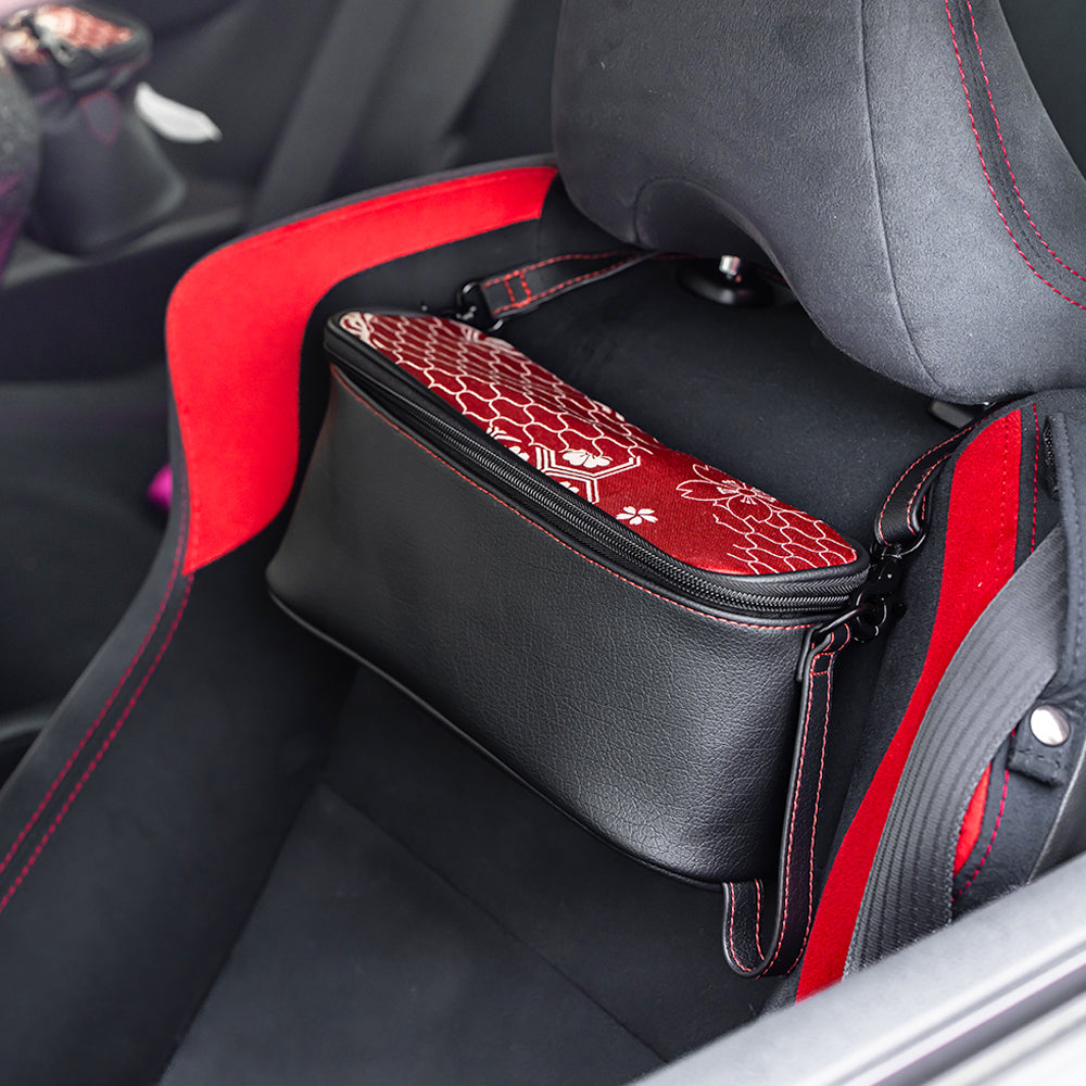A stylish organizer pouch that keeps small items neatly stored in your car.